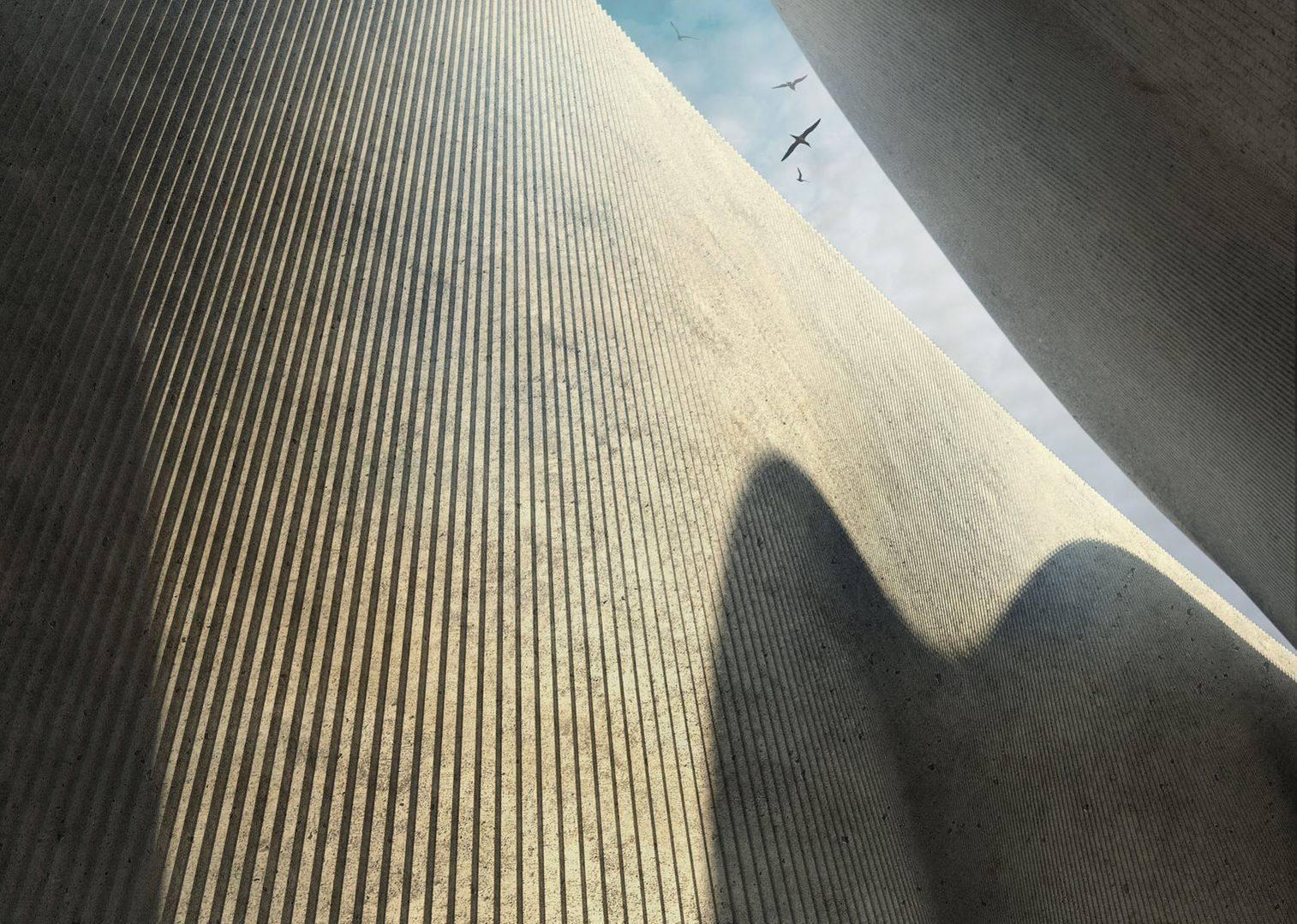 Rift is at a much larger scale than earlier projects but continues to utilize the spatial and structural potential which folding, bending or shaping can give to thin planes of material. In this case, as the reinforced concrete retaining walls cut more deeply into the ground they undulate with increasing amplitude. Not only does this result in a powerfully evocative spatial envelope, the increase in ‘effective’ cross-sectional depth which is a consequence of the increasing amplitude of the undulations results in a proportional increase in the inherent structural capacity of the walls.